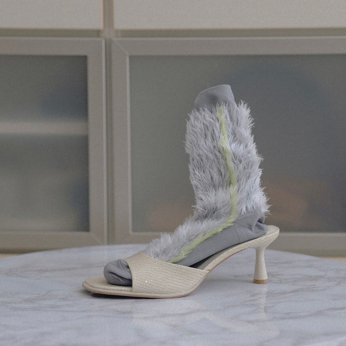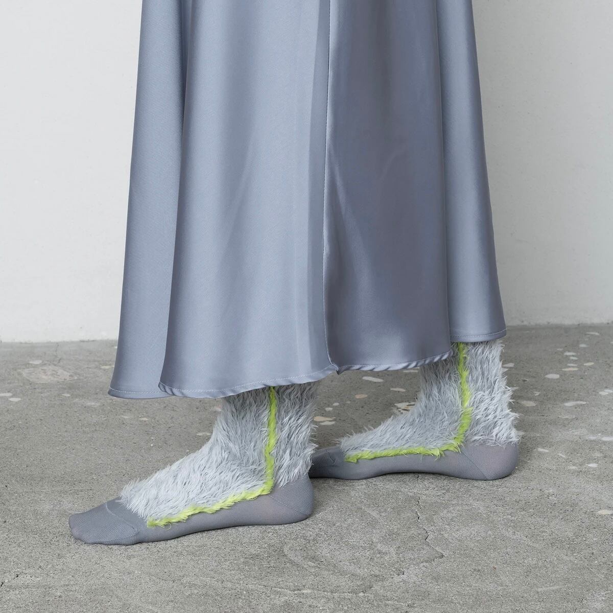 SIDE LINE FAKE FUR SOCKS【ライトグレー】