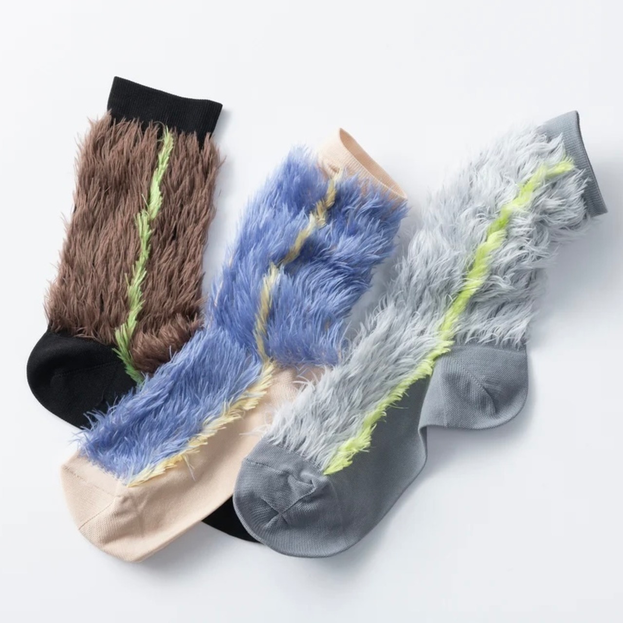 ファーのように毛足が長い素材を使ったハイソックス。