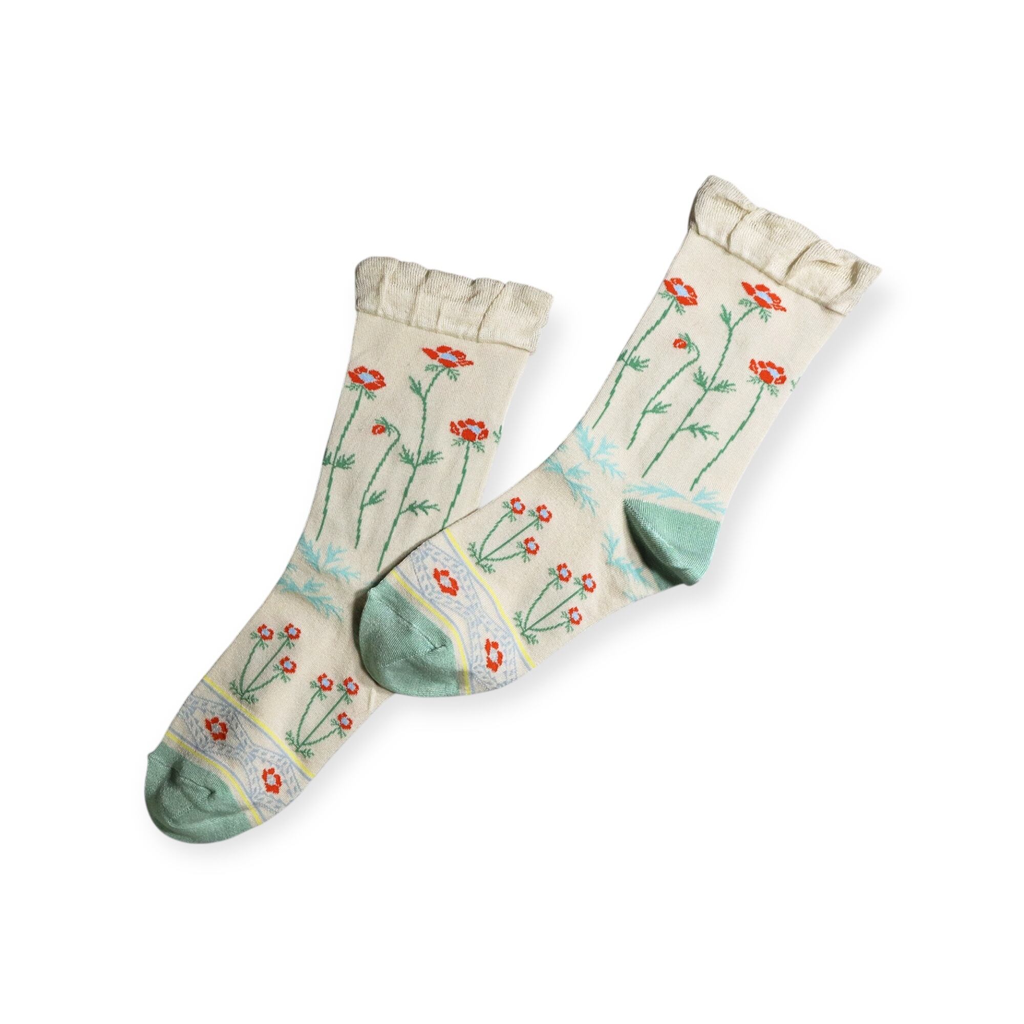 春のフランスの草原にのびやかに悠々と咲く”アネモネ”を描いたソックス。