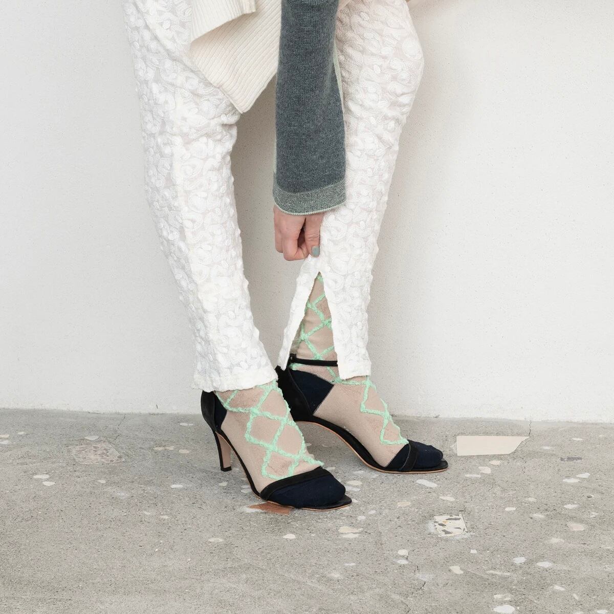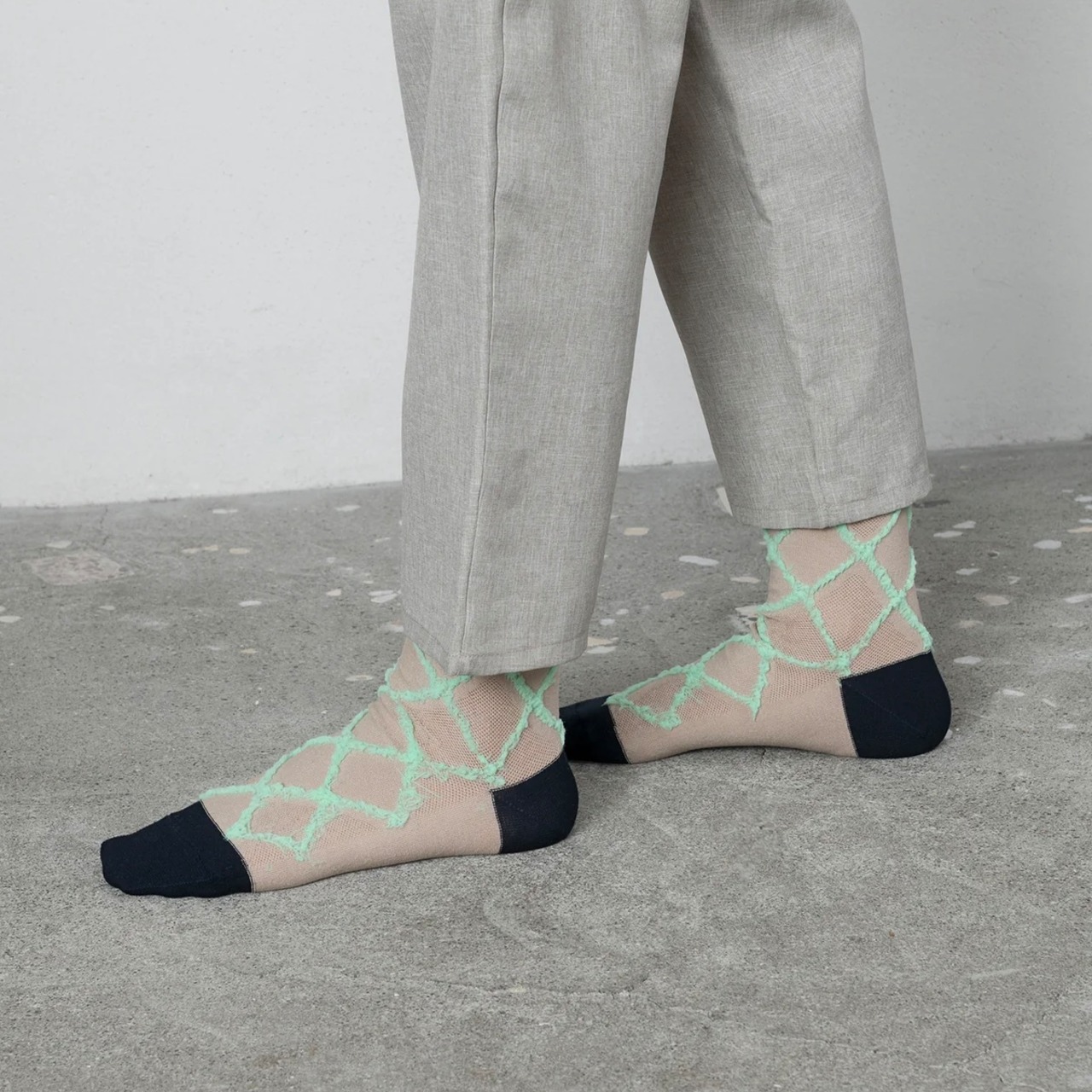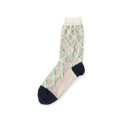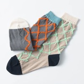 もこもこのダイヤ柄がかわいいデザインソックス。 伸縮性のある糸で編まれており、ビビッドな配色がシンプルになりがちな足元をさり気なく引き立てます。