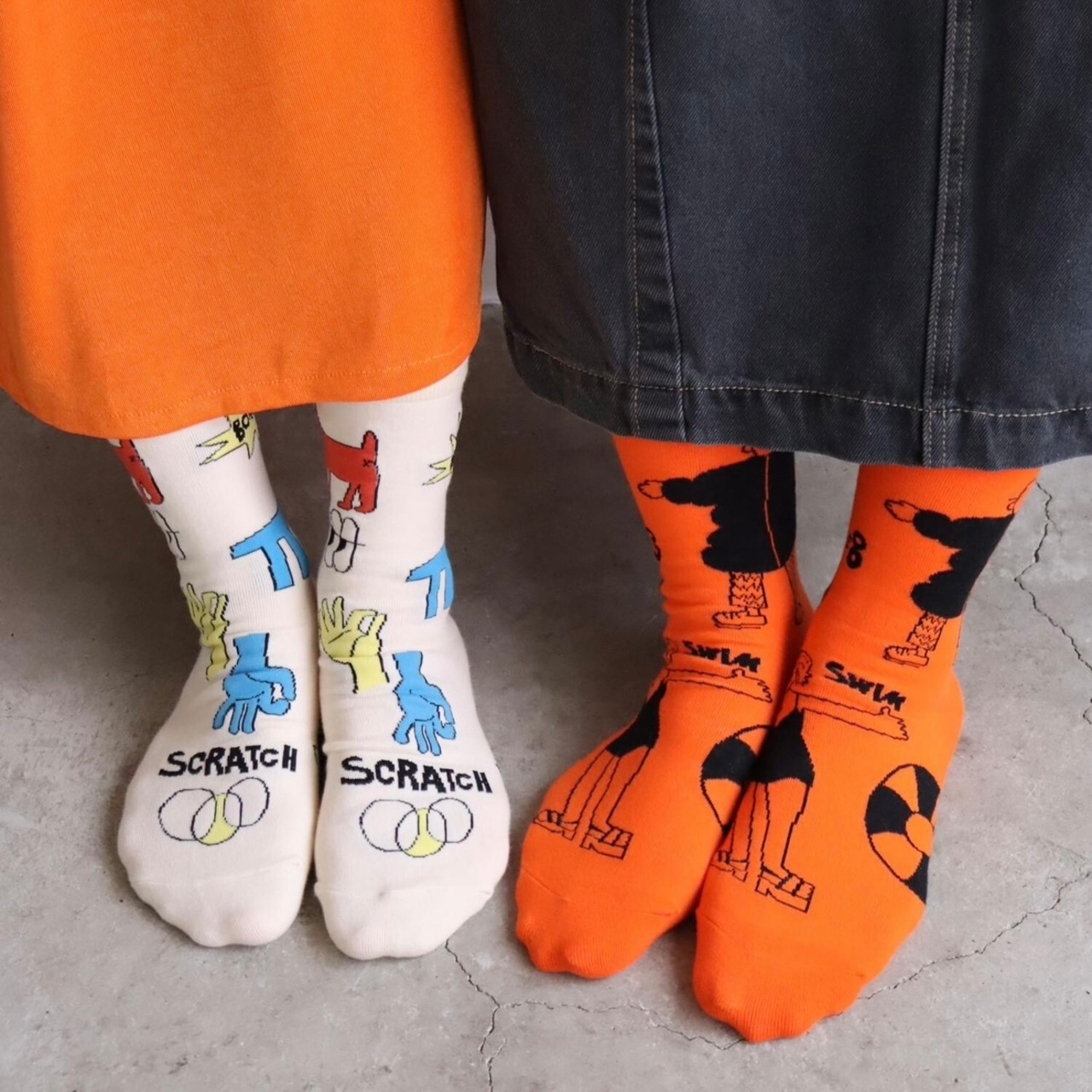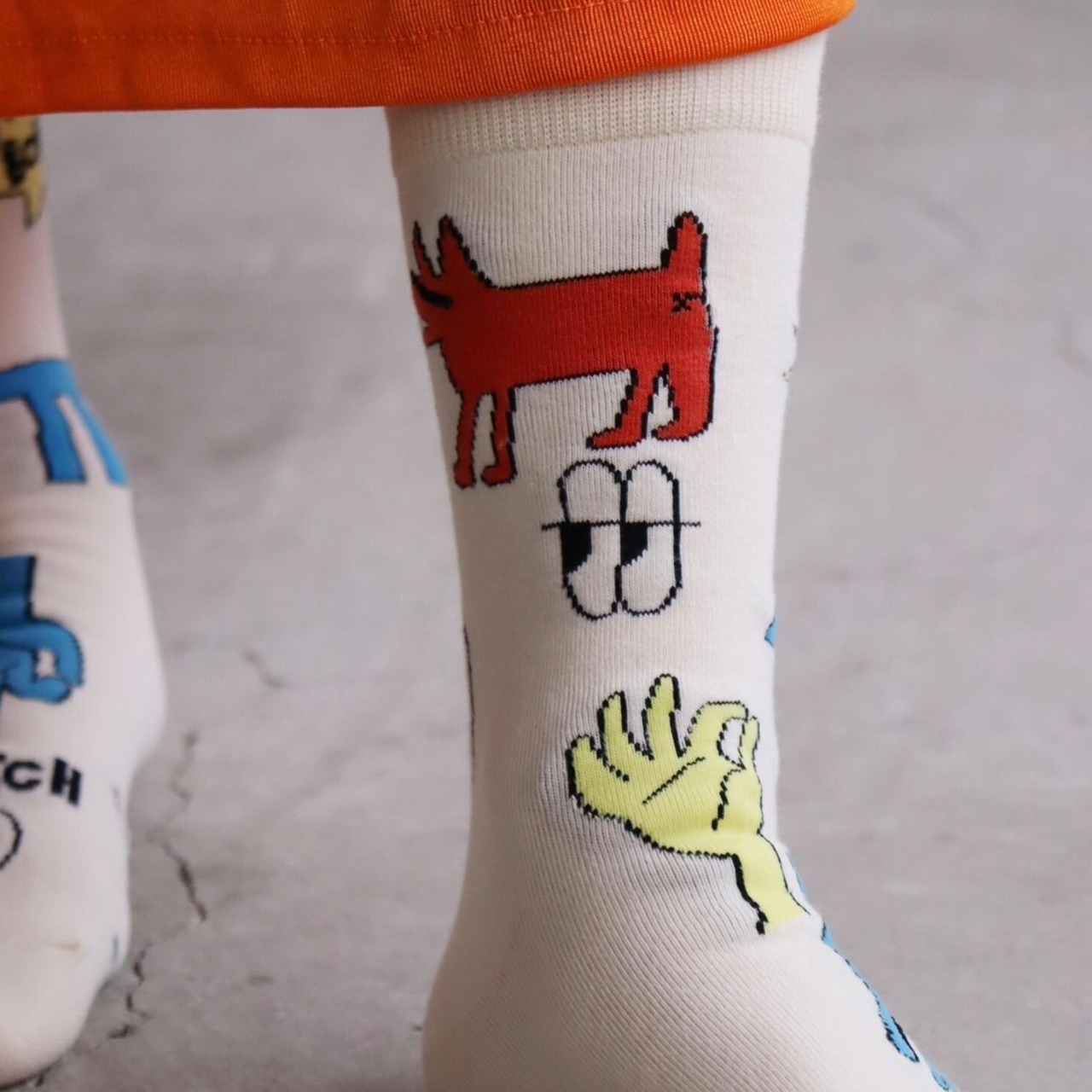 でも履いたらなんか笑えてくる、そんなラクガキソックス。赤い犬やスケボー、謎の手やセリフ…考えちゃダメ、感じるんだ!