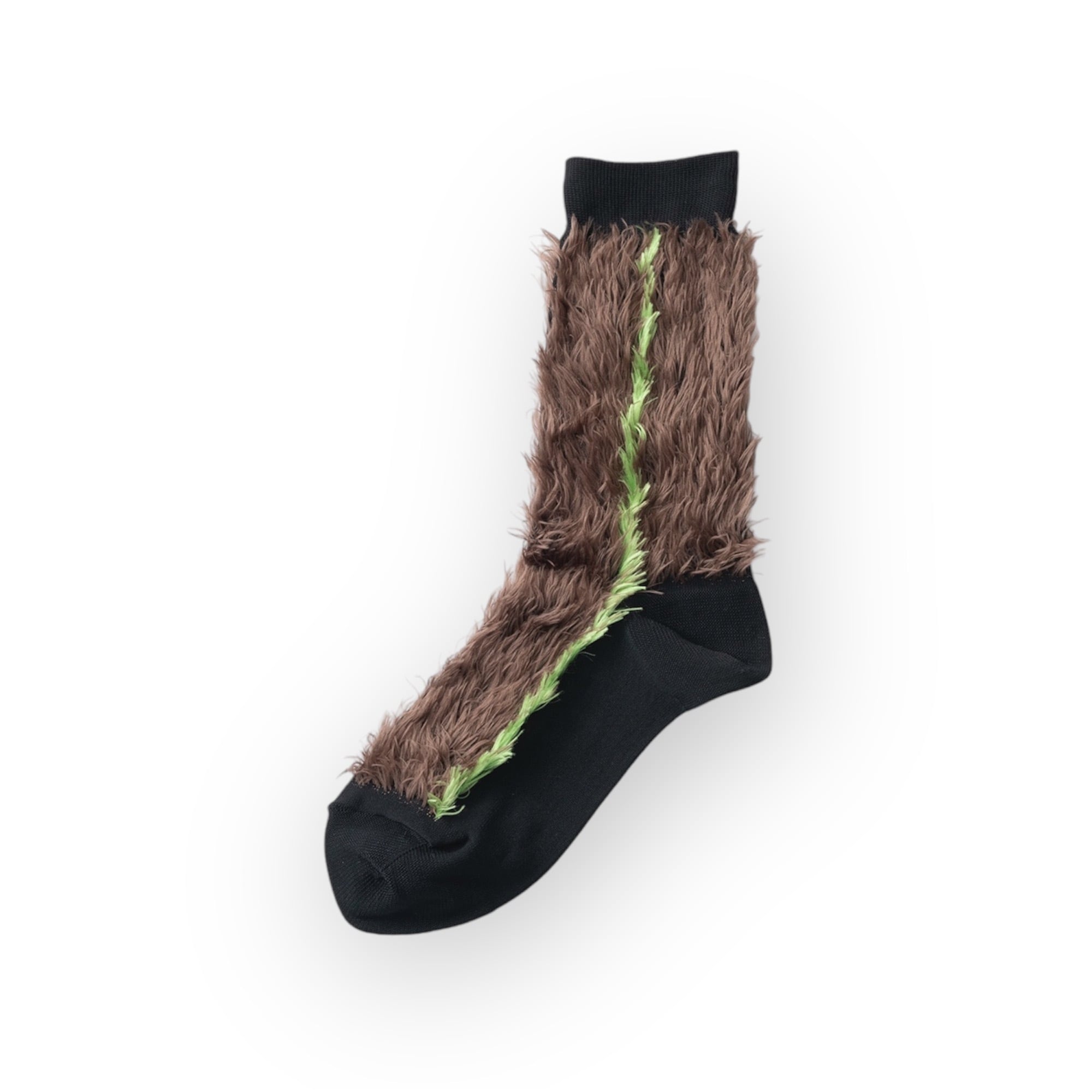 SIDE LINE FAKE FUR SOCKS【ブラウン】