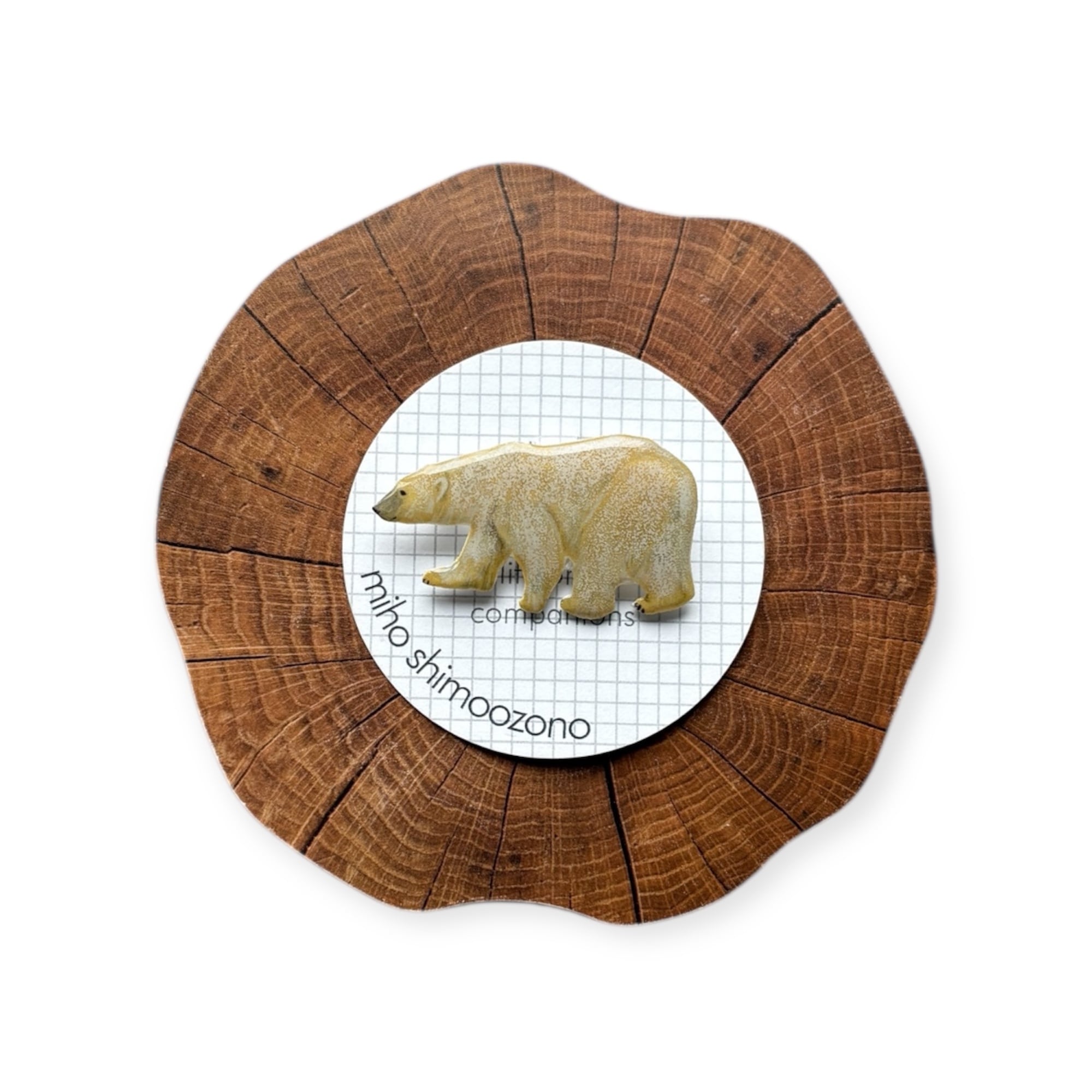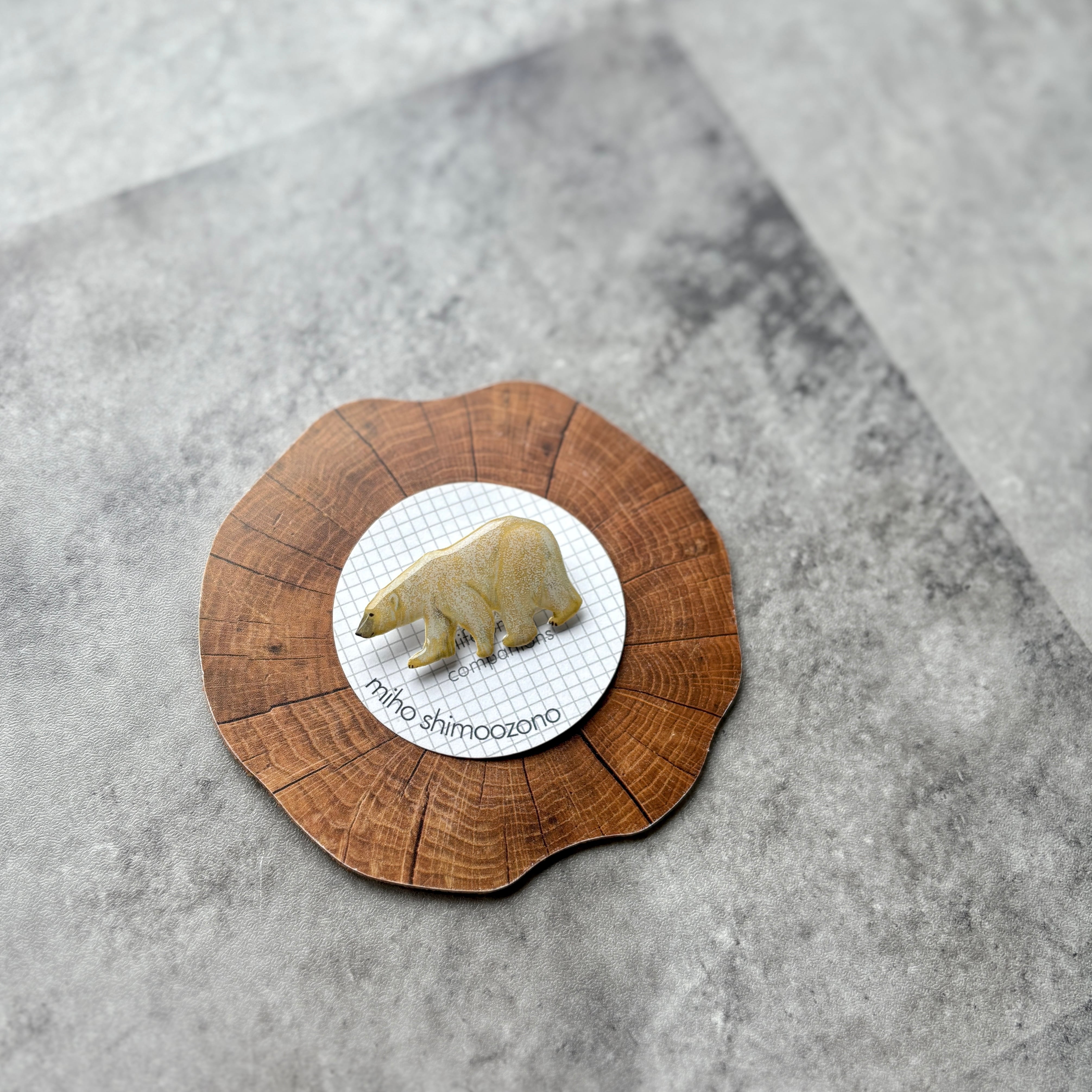 手描きでリアルな食べ物や生き物を描写したブローチ。