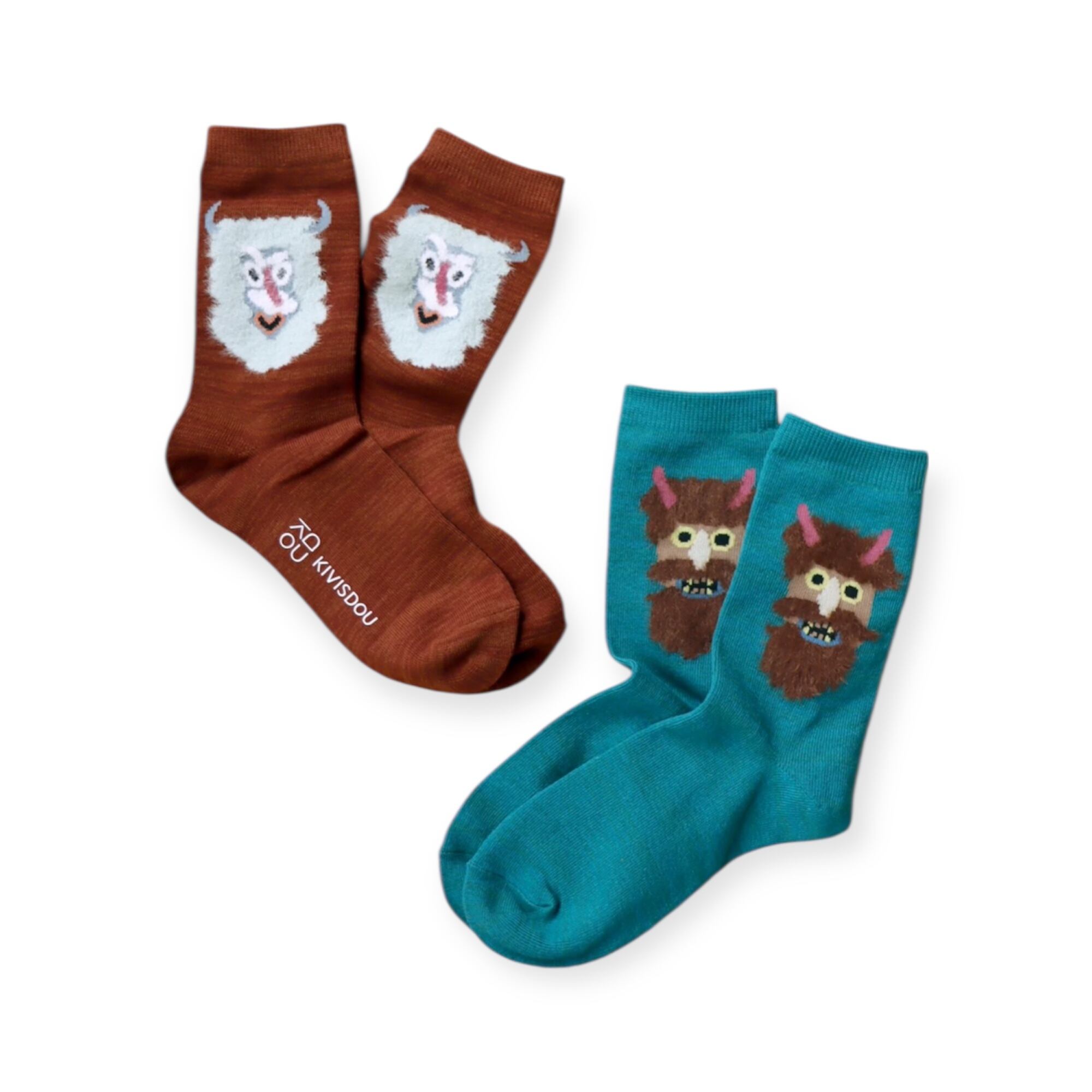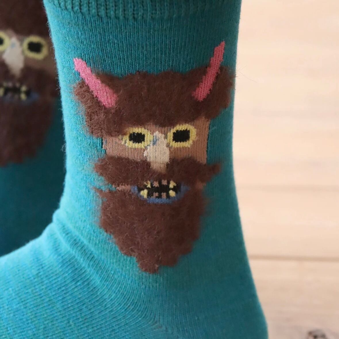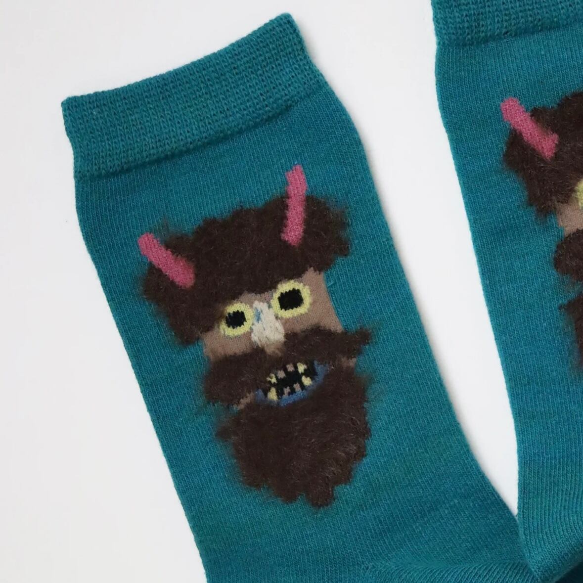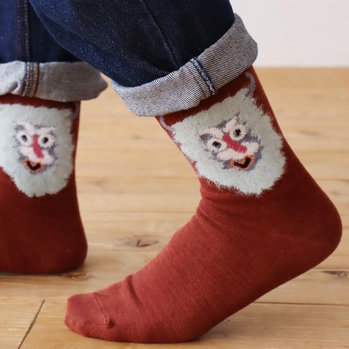 ルー周辺の祭礼用仮面からマニアインスピレーションを得た「ふさふさ仮面」モチーフのソックス。遊び心のあるデザインが、日常のスタイルにフォークロアのエッセンスを添えてくれます。