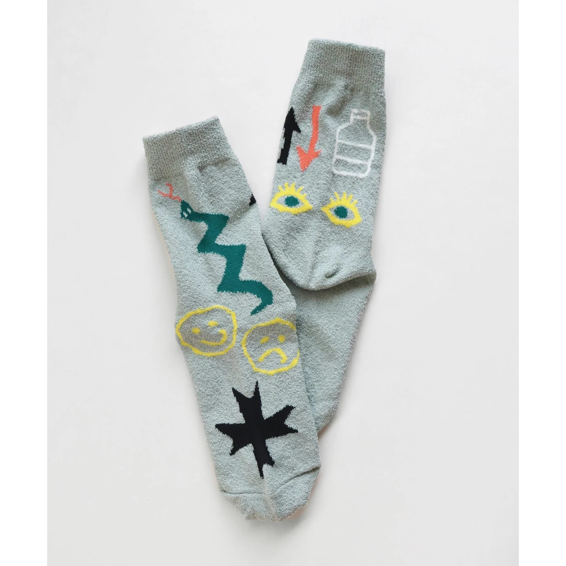 おもちゃ箱をひっくり返したみたいに、“好き”がごちゃ混ぜになった HAPPYなミックス柄 のソックスです。