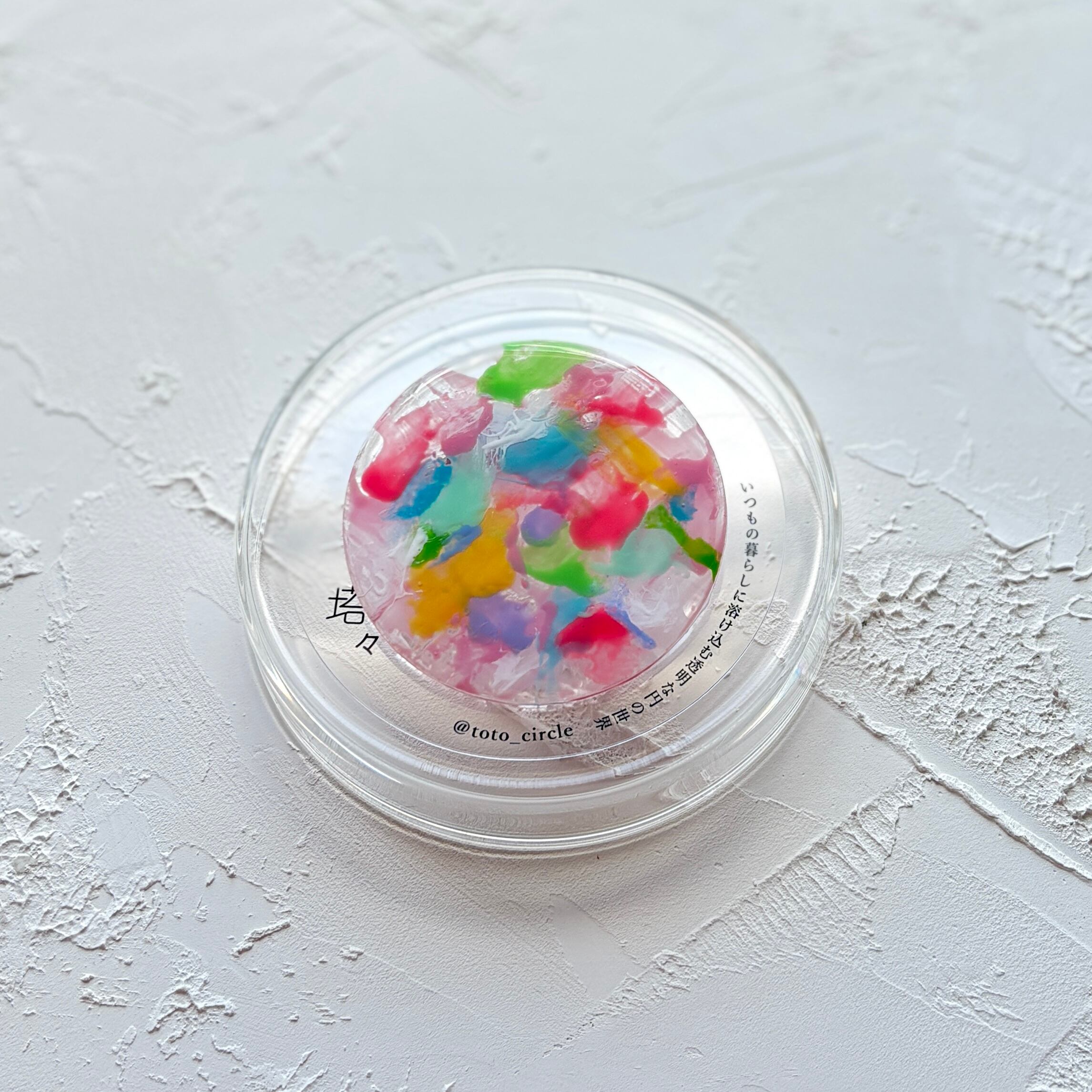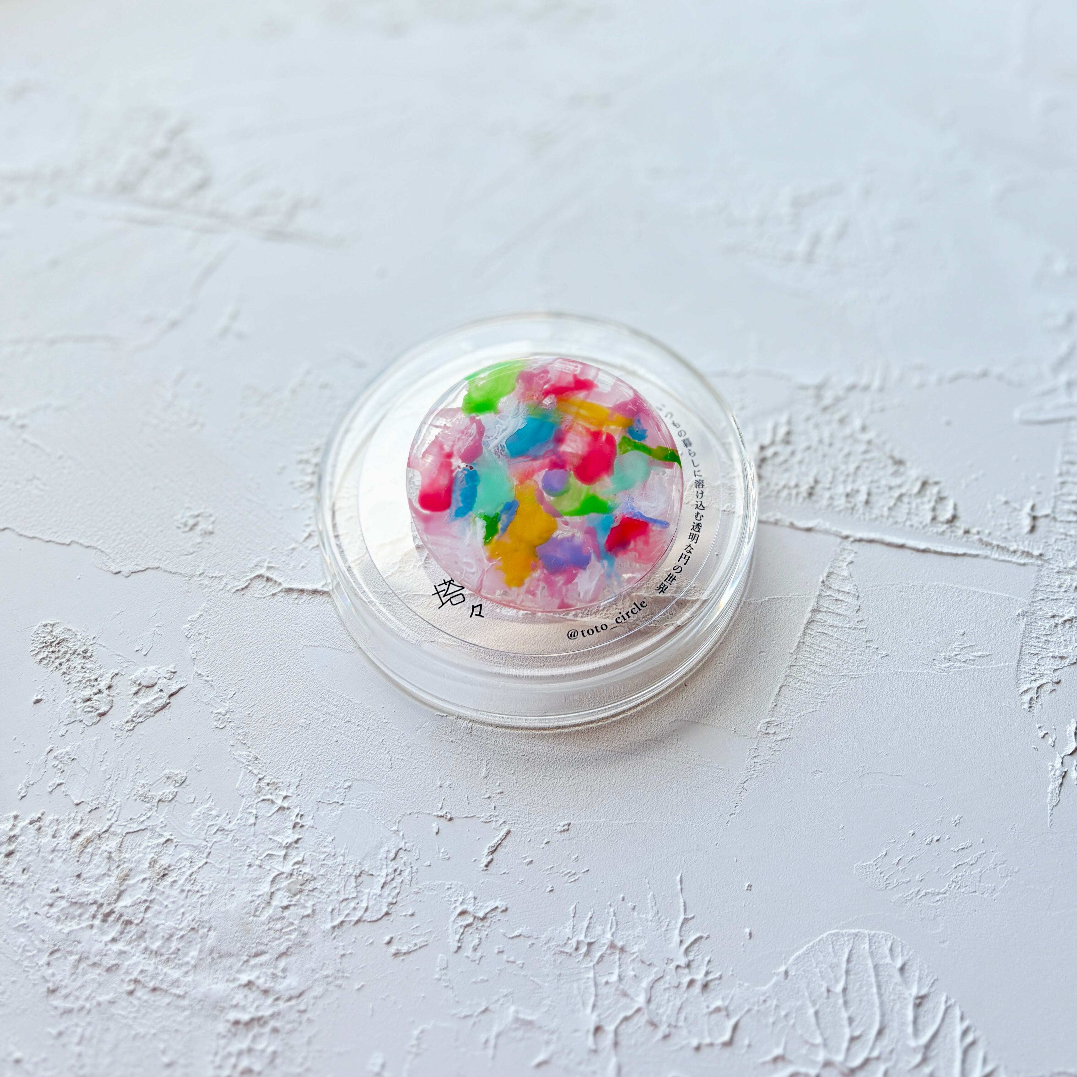 アクリル円板にネイルジェルなどで彩色