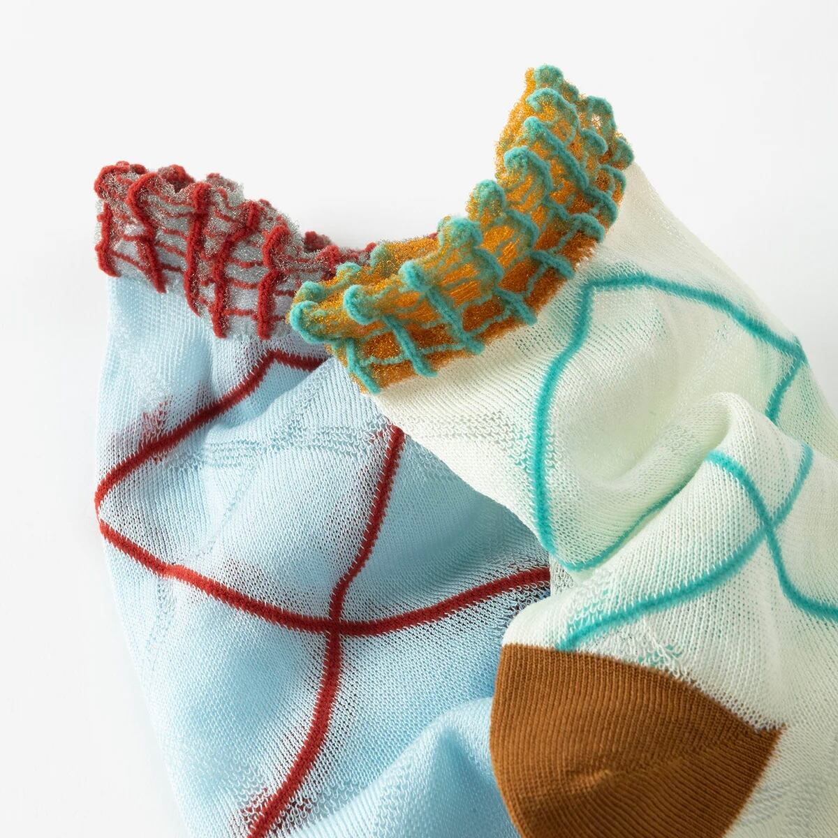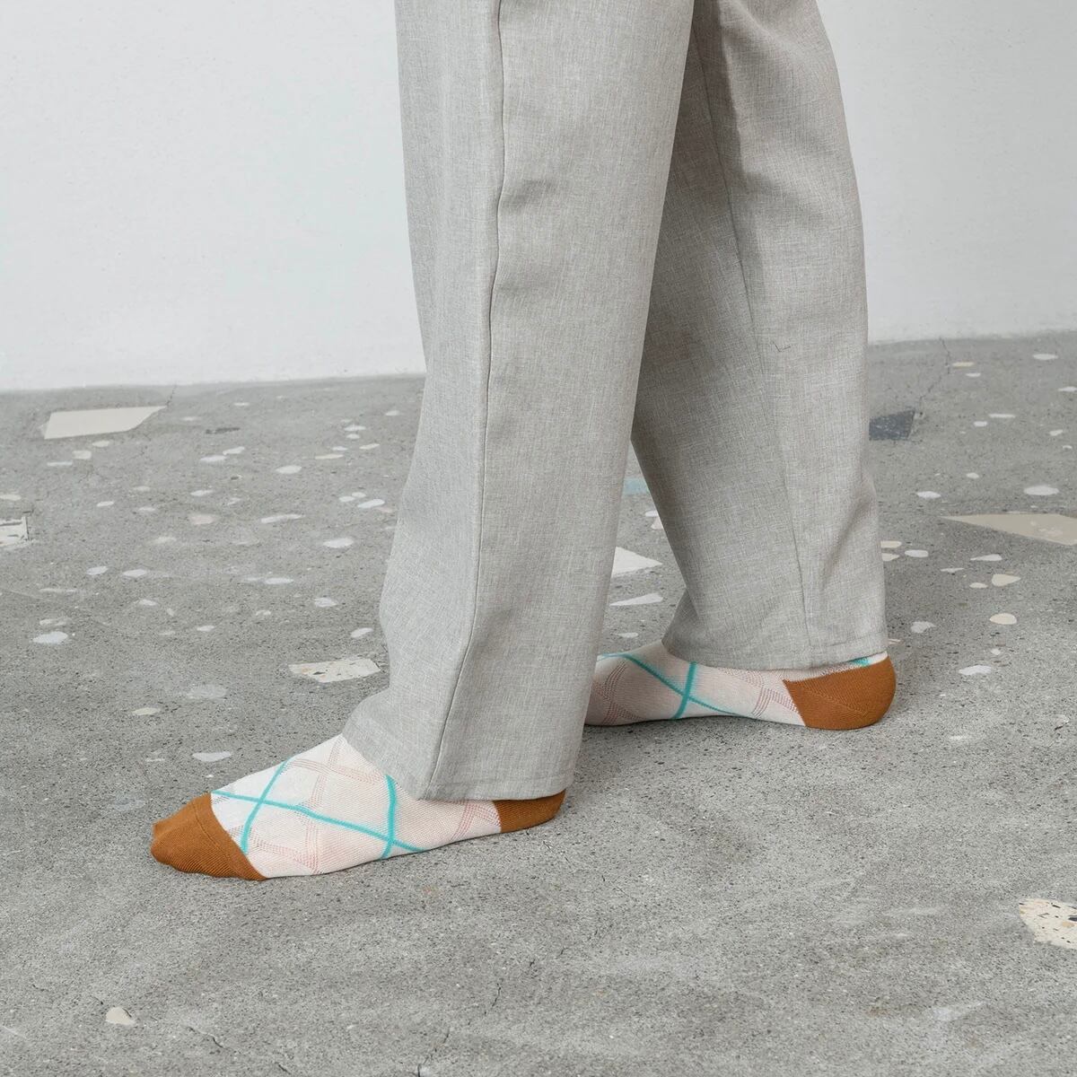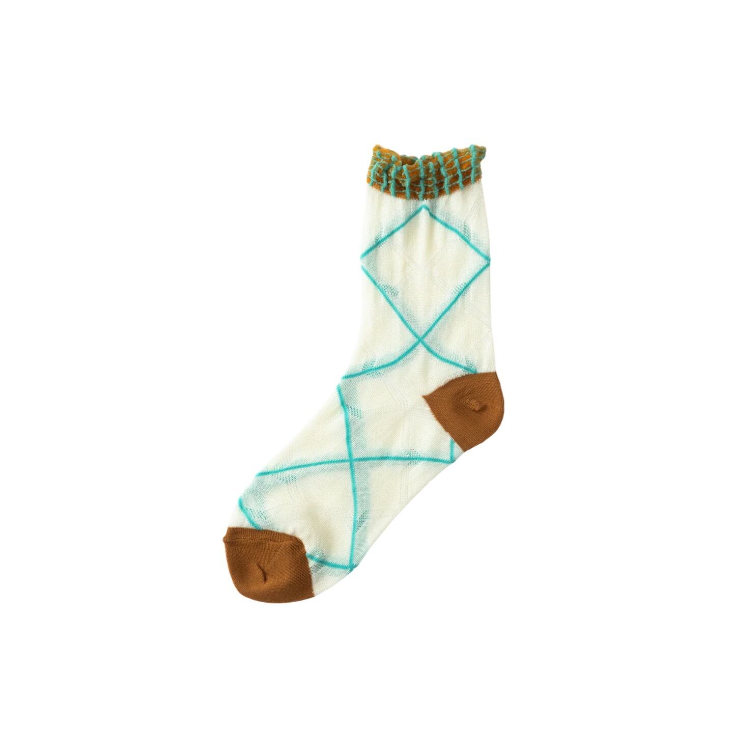 履き口のチェック柄とクロスラインが絶妙にマッチするデザインソックス。 透け感のある生地にも編み地のクロスチェックが施されており、見ても履いても楽しい靴下です。 POPな配色もどこか都会的な洗練された雰囲気でオシャレさをアップさせます。 ベーシックなボトムスに合わせて足元にチャーミングさを。