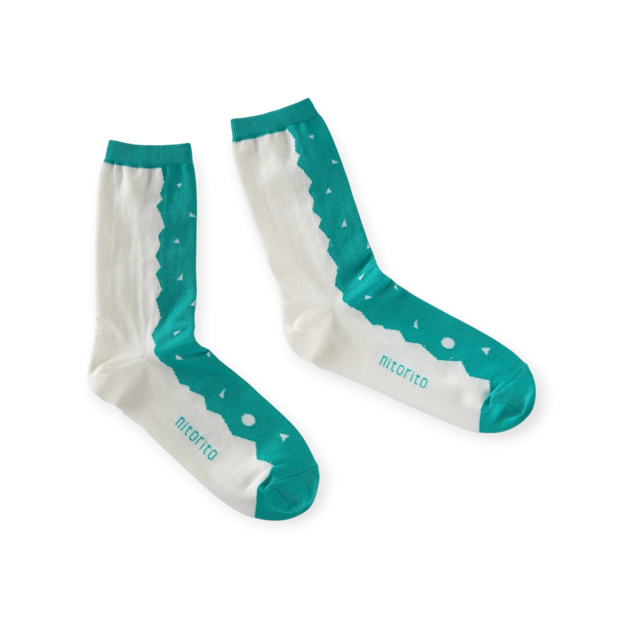 どの方向から見ても異なる印象の靴下となっています。