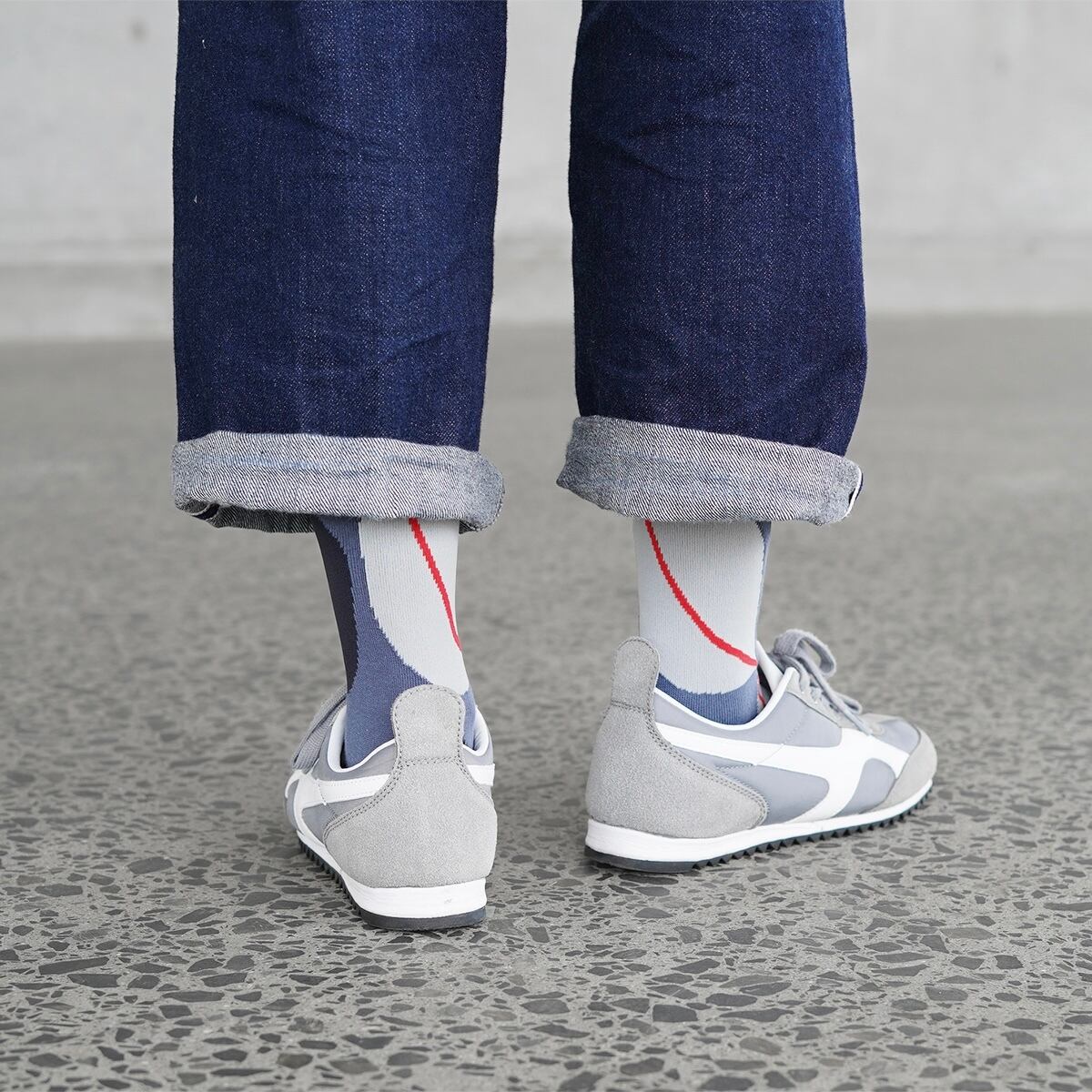 この靴下は奈良の靴下工場で作られており、熟練の職人技術によりジャカード編みで柄を表現しています。