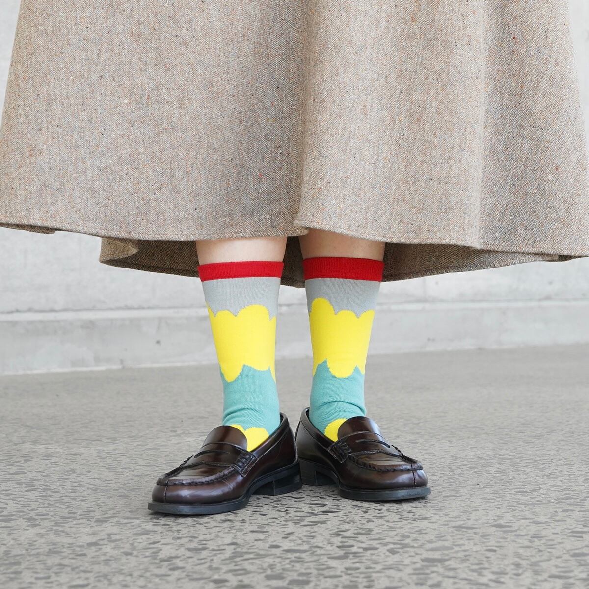 この靴下は奈良の靴下工場で作られており、熟練の職人技術によりジャカード編みで柄を表現しています。