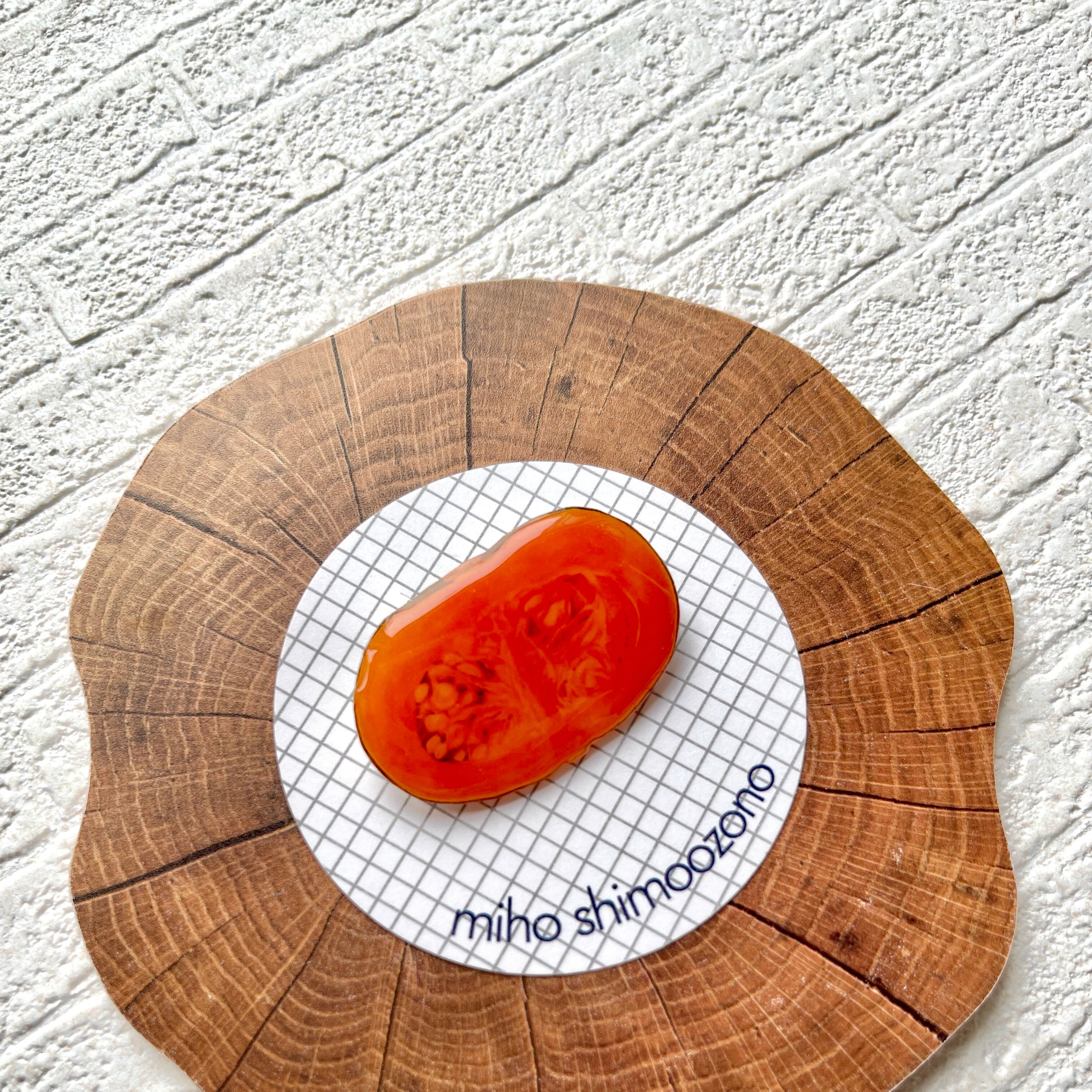 手描きでリアルな食べ物や生き物を描写したブローチ。
