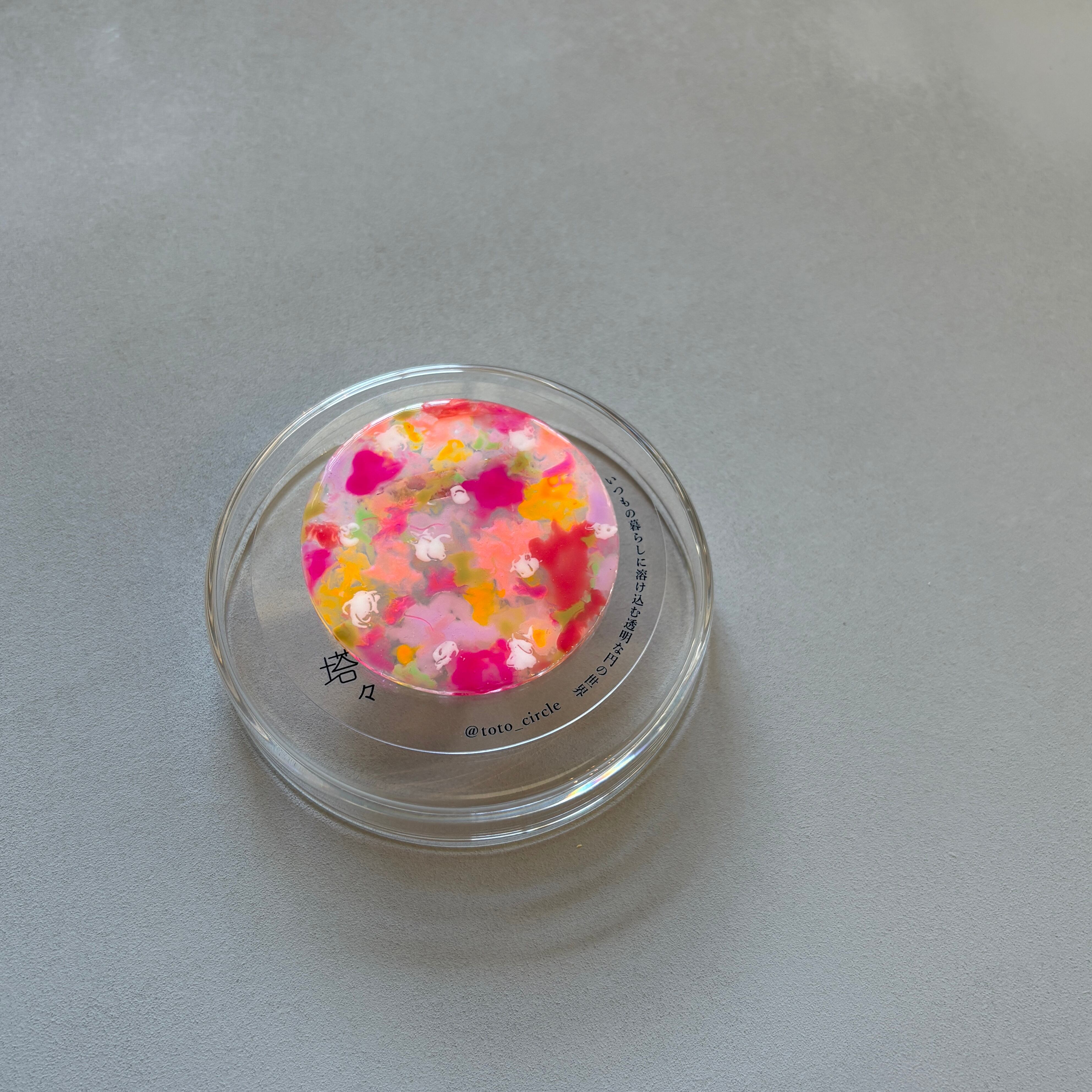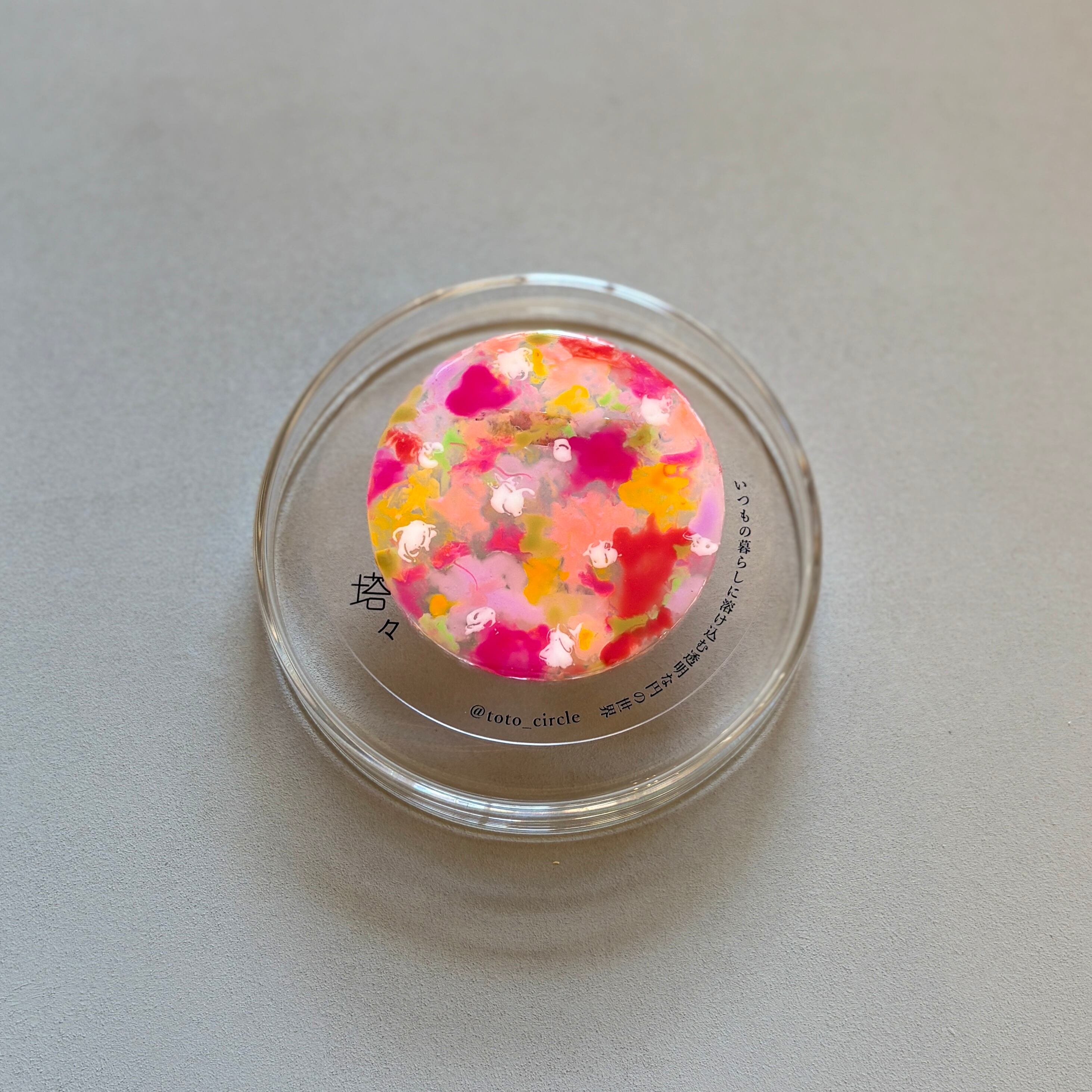 アクリル円板にネイルカラージェルなどで